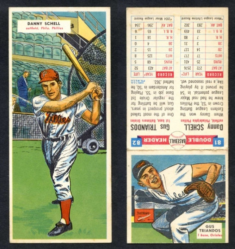 - 1955 Topps Double Header Baseball # 081 Danny Schell Phillies & # 82 Gus Triandos Orioles EX