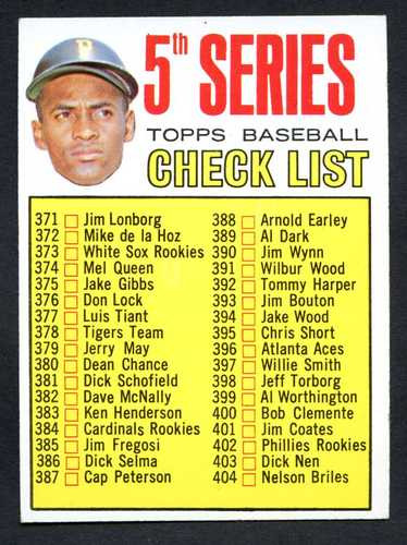 Click the button below to add the 1967 Topps Baseball # 361 Checklist 5 Roberto Clemente Cards 371 to 457 EX/MT-3 to your wish list.