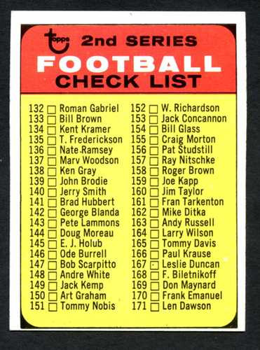 Click the button below to add the 1968 Topps Football # 219 b Checklist 2 Blue Print on Back EX to your wish list.